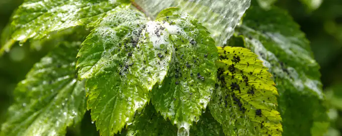 Zkroucené listy a lepkavé skvrny na bramborách jsou neklamným znamením, že keř napadly černé mšice. Pokud nyní nezakročíte, přijdete nejen o estetický