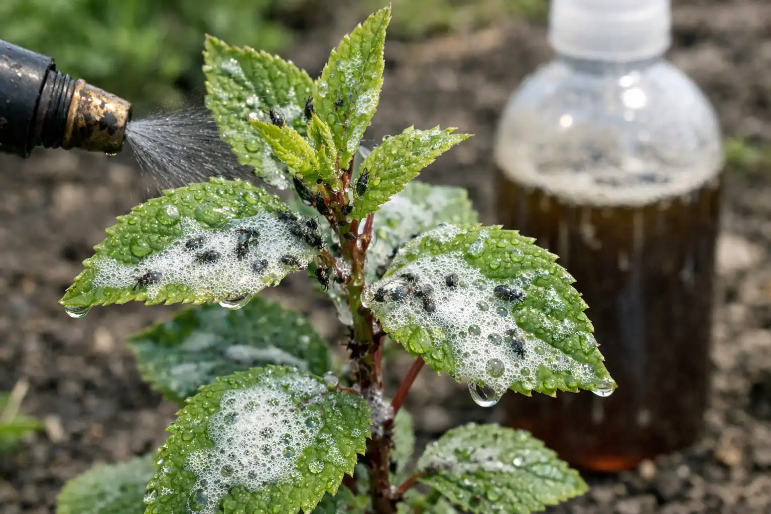 Tajná nuance: aby roztok působil déle, dva dny ho nesmyjte. Film, který dehtové mýdlo vytvoří, zabrání larvám uchytit se na stoncích a zároveň je zcela bezpečný pro budoucí úrodu.