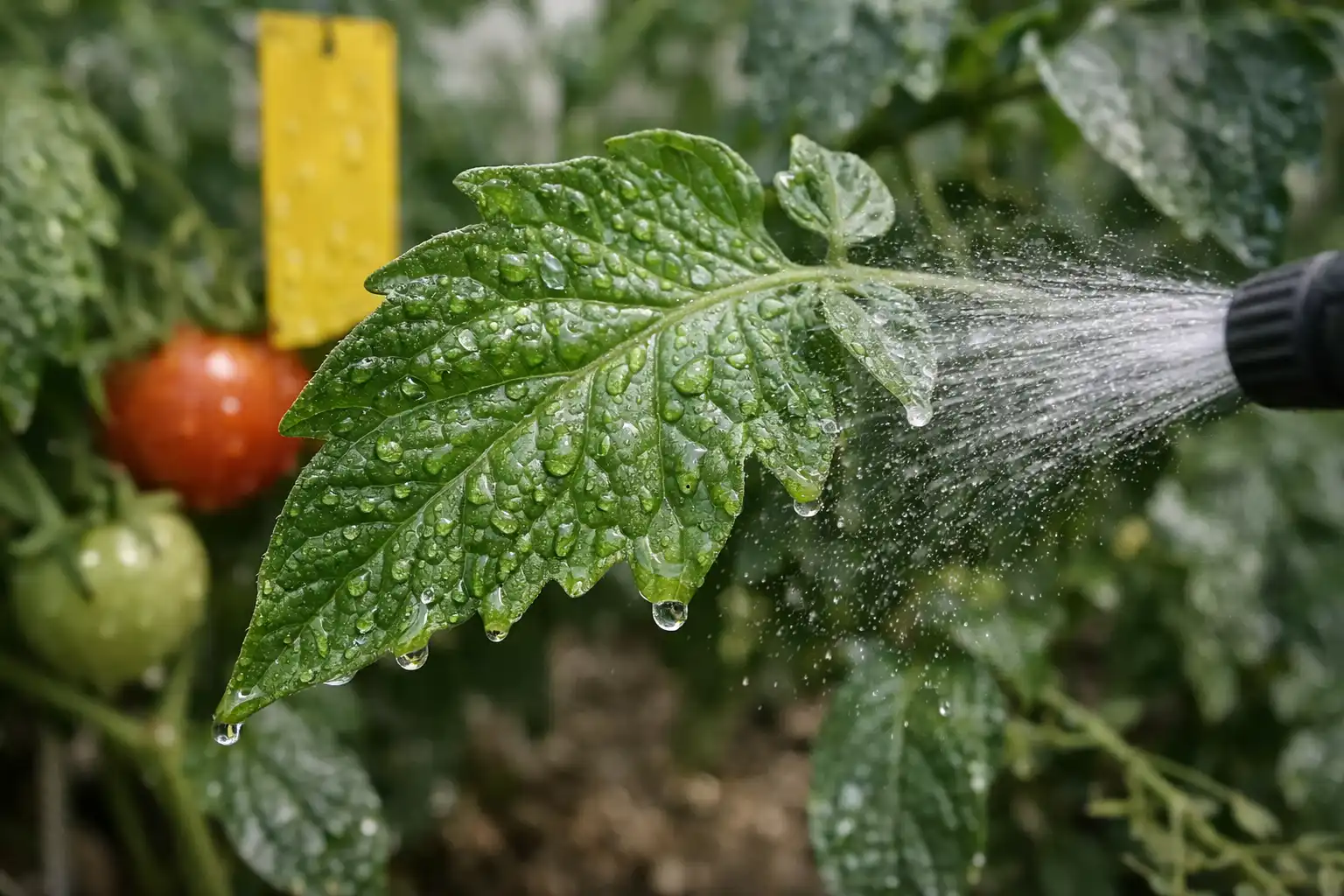 Zavěste žluté lepicí pasti na úrovni vrcholků rostlin rajčat.