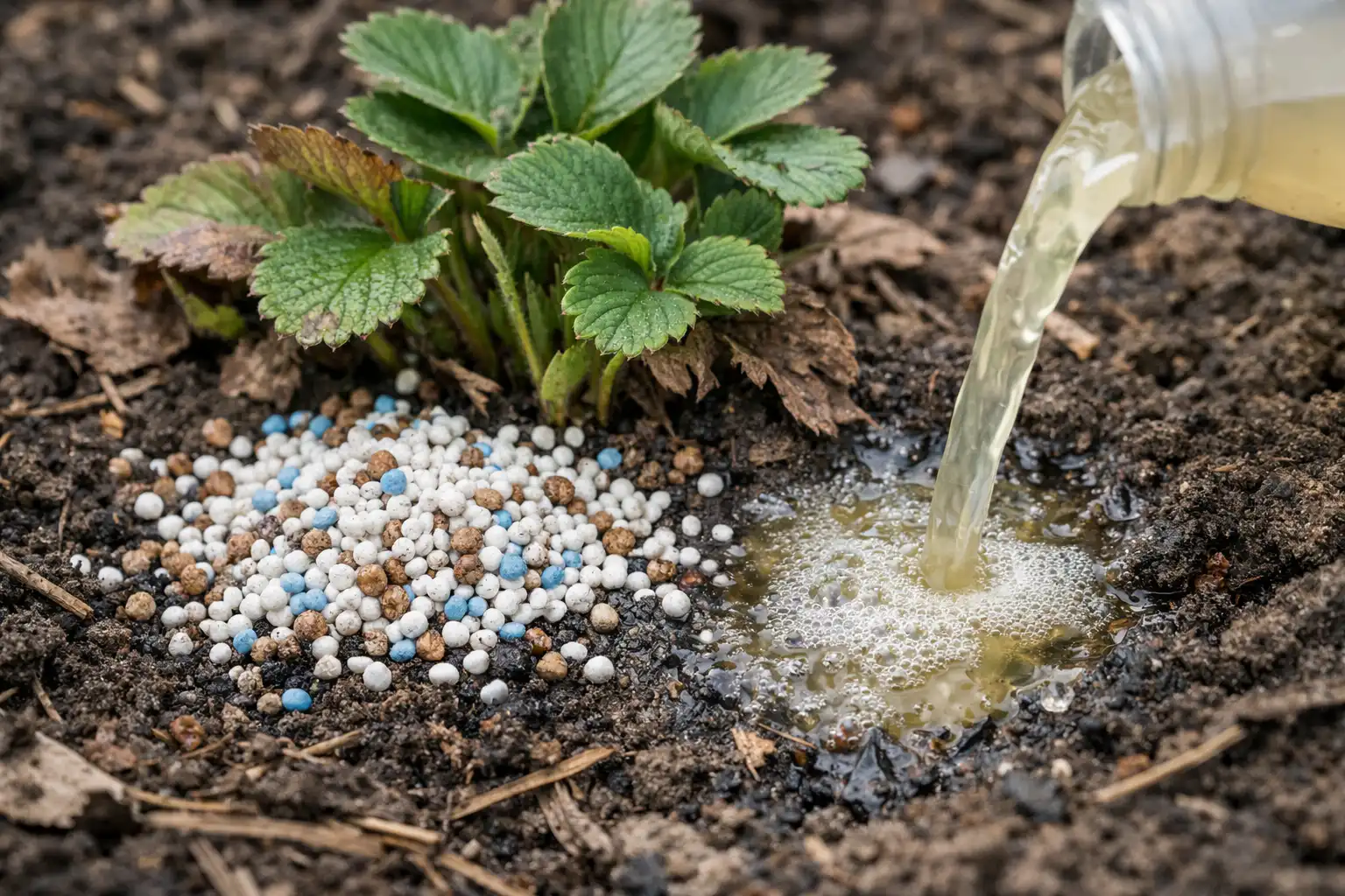 Jakmile se půda zahřeje, jahody nepotřebují dusík v čisté formě, ale stimulaci kořenového systému. Pokud se kořeny neprobudí, veškerá hnojiva se do hlubokých vrstev půdy dostanou zbytečně.