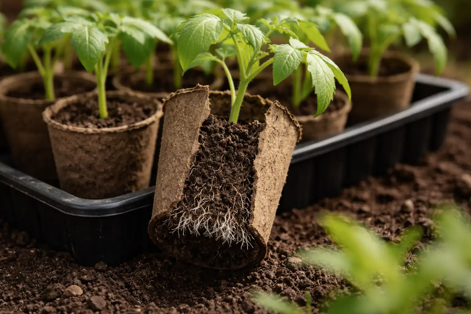 Správně připravený rašelinový květináč se stane médiem bohatým na živiny, které rajčatům ihned po výsadbě zajistí silný růstový spurt.