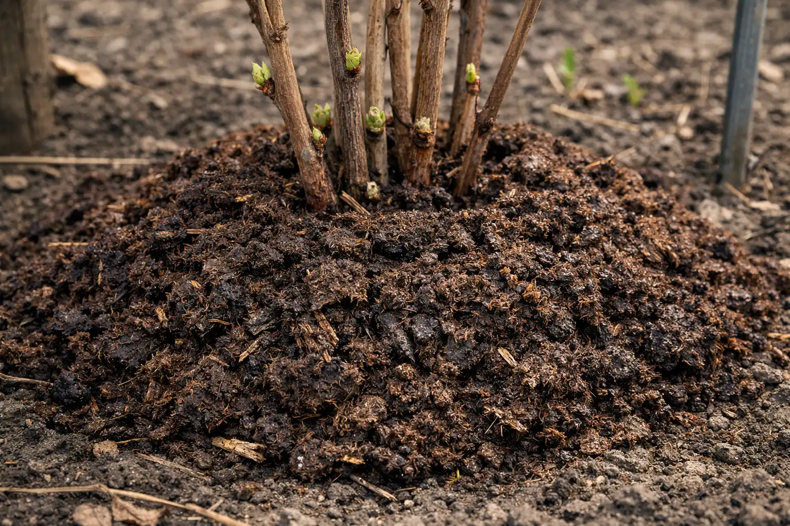 Čerstvý hnůj je přijatelný pouze jako mulč na silné vrstvě slámy, aby nedošlo k popálení povrchových kořenů.