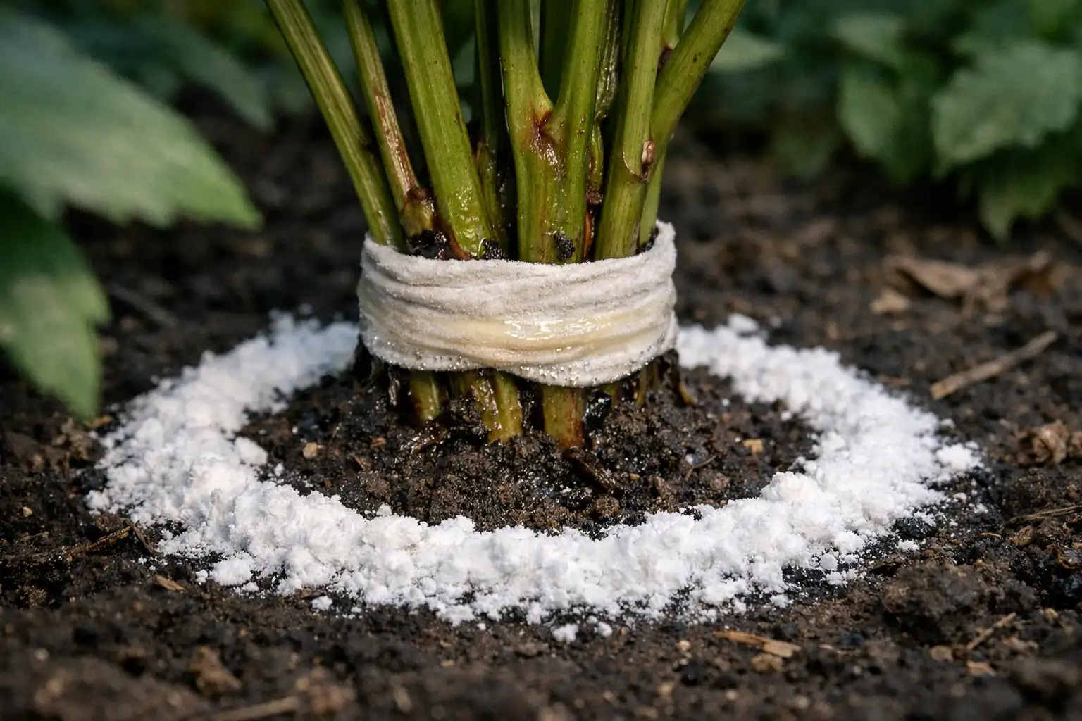 Kolem báze keře omotejte pruh látky namočený v nerafinovaném rostlinném oleji.