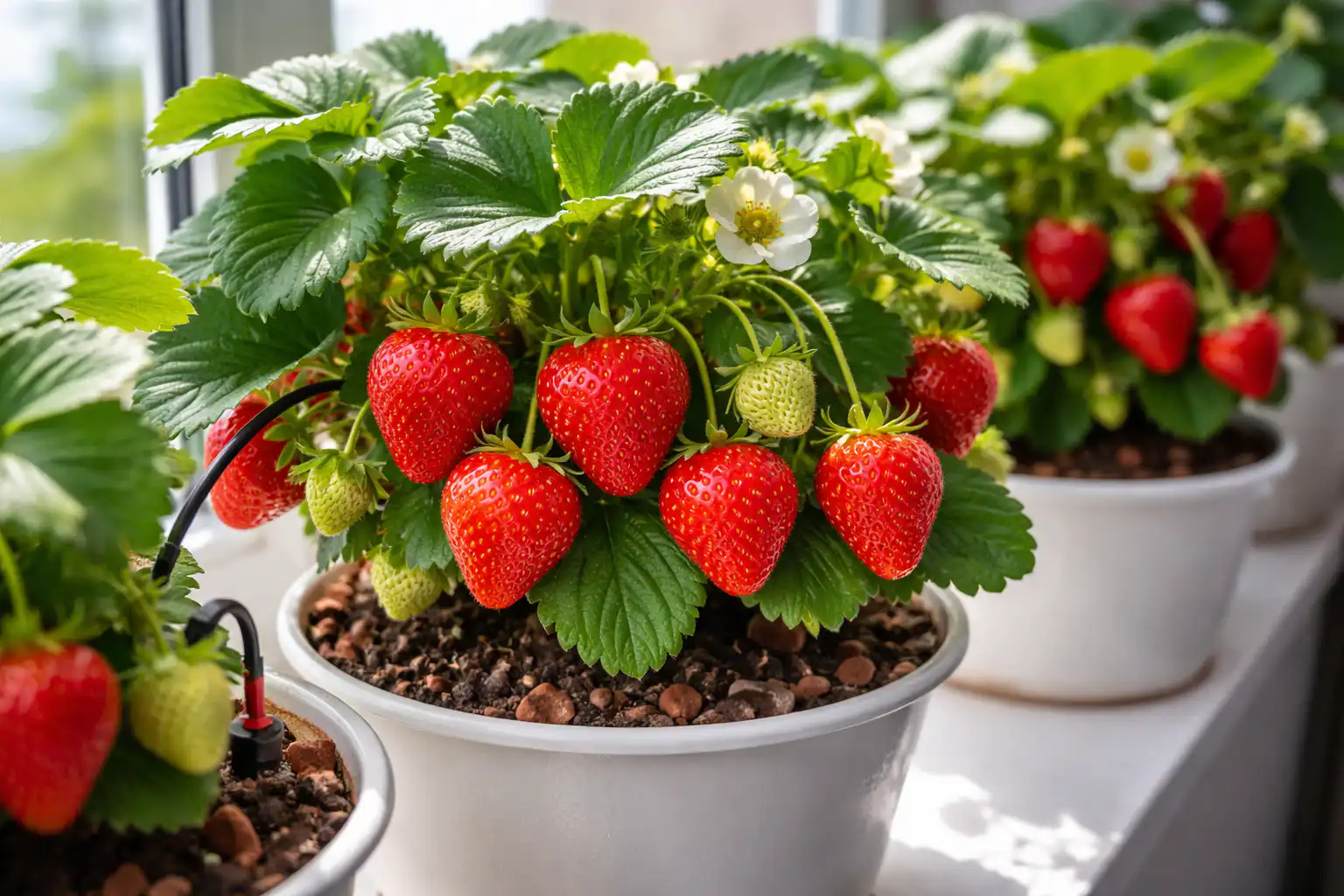 Zdravé jahodové keříky na okenním parapetu budou nejen zdrojem vitaminů, ale také krásnou ozdobou interiéru.