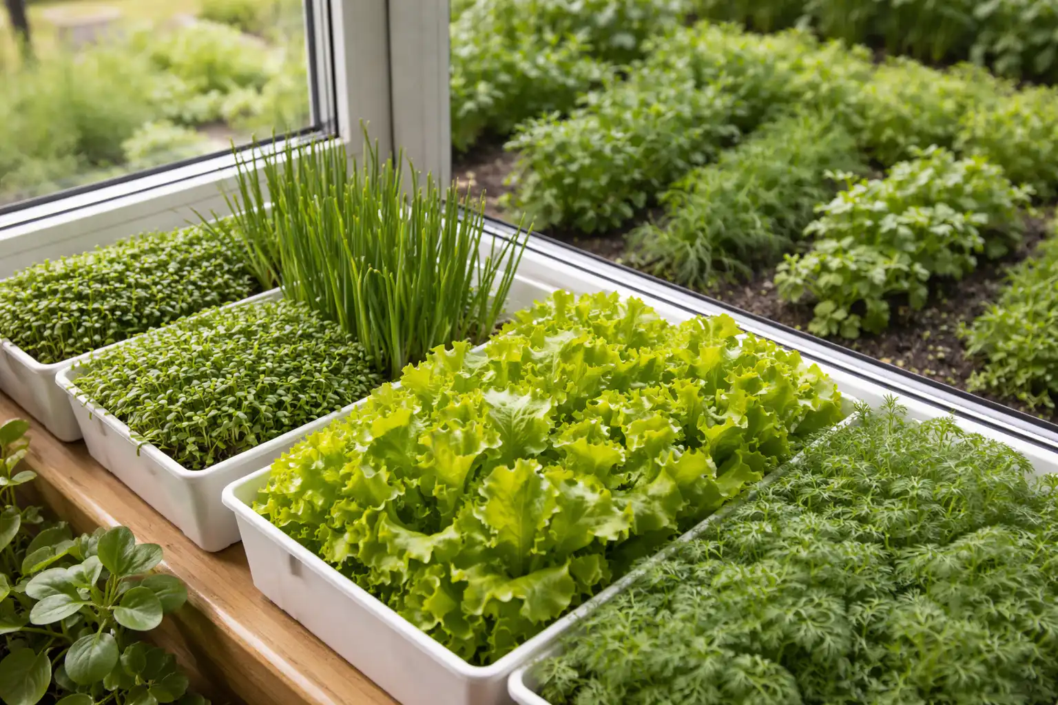 Různým druhům se nejlépe daří v podmínkách s nedostatkem světla hořčice listová a obyčejnou cibuli.