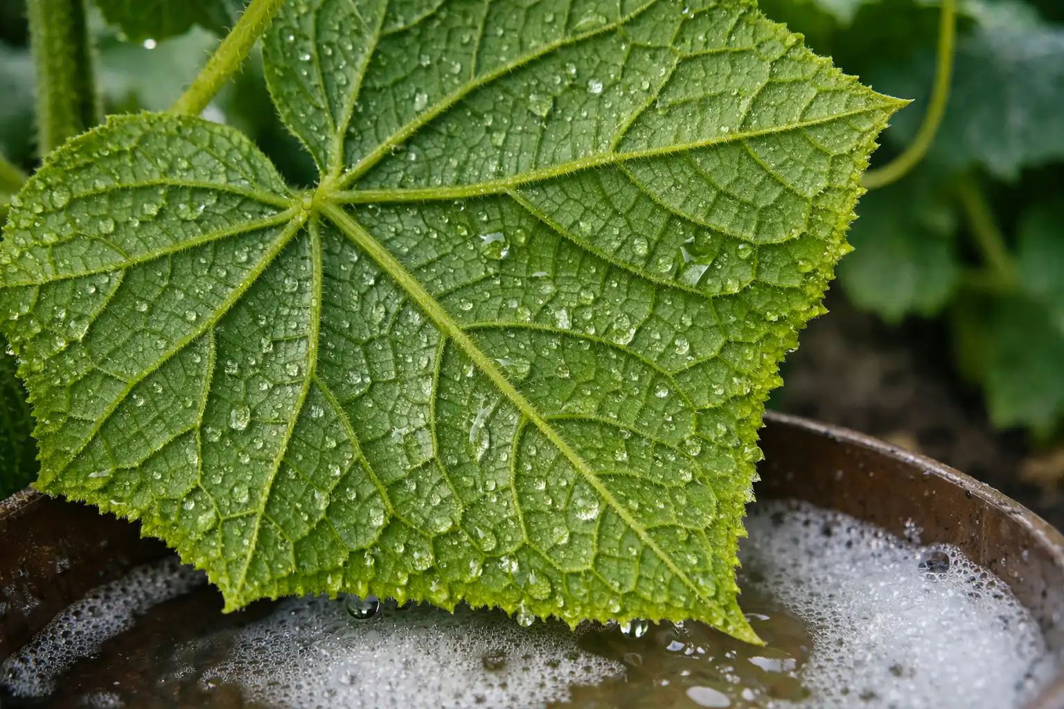 Spodní stranu listů okurky opláchněte čistou vodou, abyste smyli většinu dospělců.