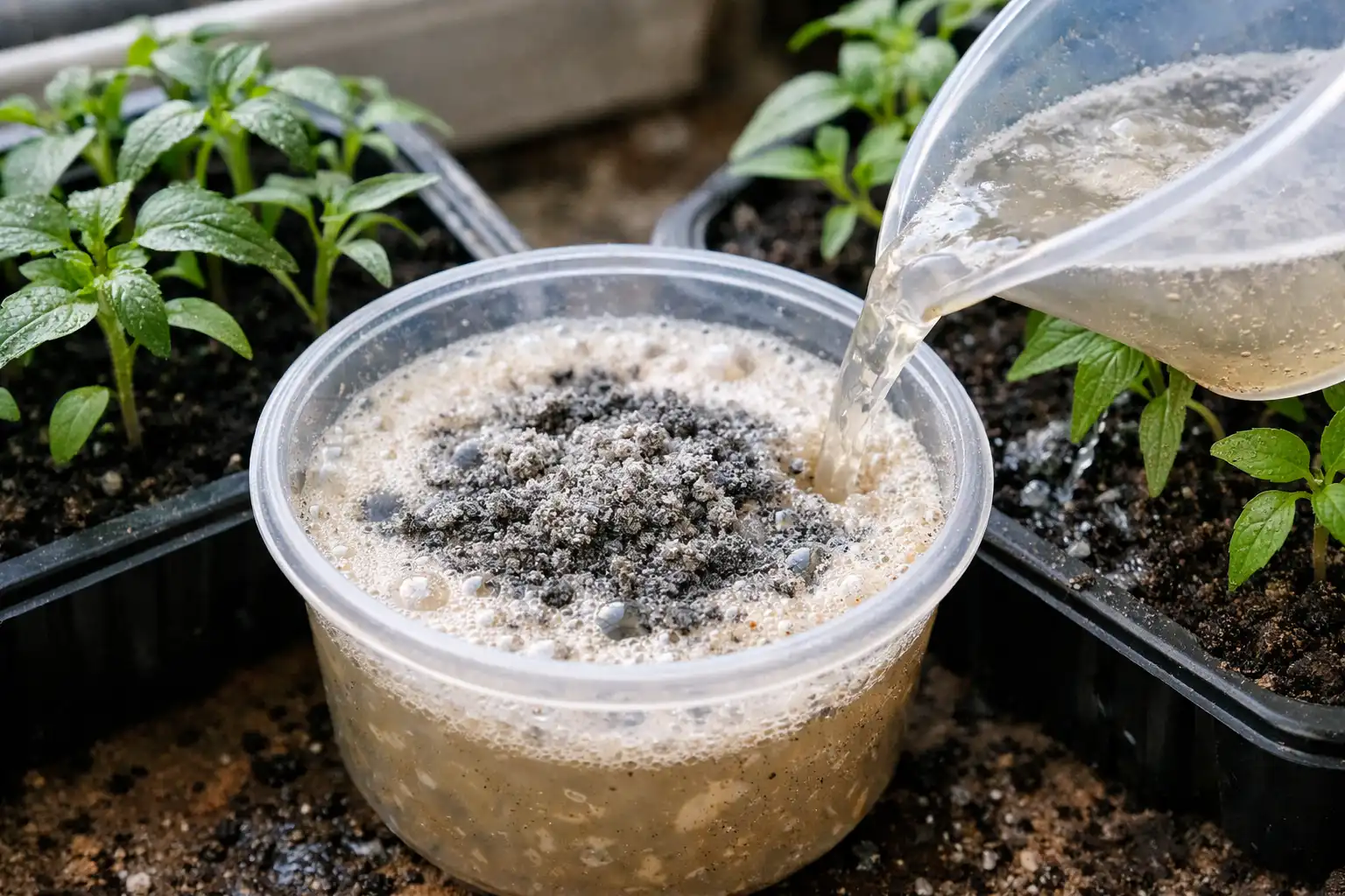 Tajná nuance: Kvasinky při své činnosti aktivně vstřebávají z půdy vápník и draslík. Proto je přidání popela do tohoto receptu nezbytné – okamžitě doplní tento nedostatek a zabrání vyčerpání půdy.