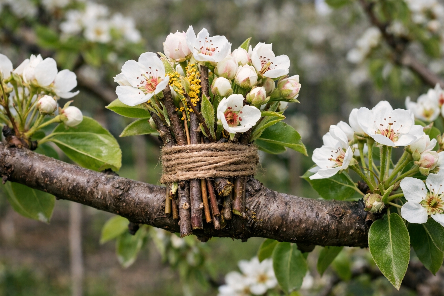 Pokud nechcete každý rok běhat se sklenicemi a větvemi, existuje trvanlivější řešení – tzv. Přesazování. Stačí do koruny hrušně naroubovat jen jednu nebo dvě větve jiné odrůdy. Budou růst společně s hlavním stromem a každé jaro ho zásobovat pylem.