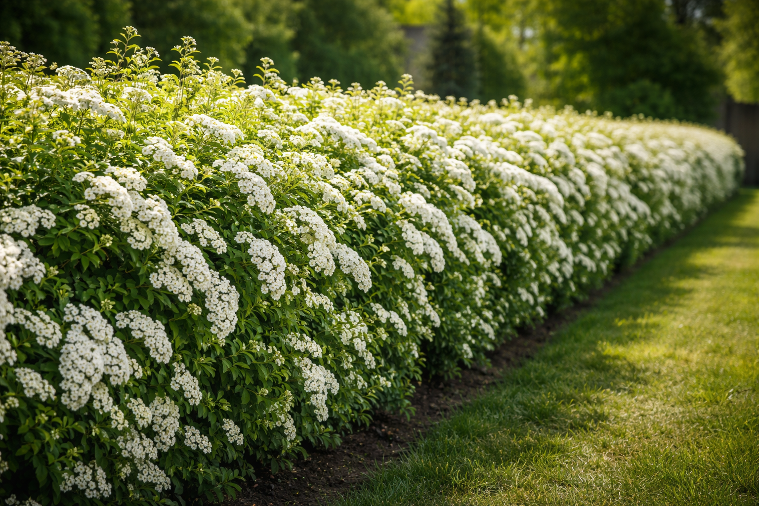 Vhodně vysazený živý plot ze spireí je vynikající kulisou květinových záhonů a spolehlivou ochranou proti prachu a hluku.