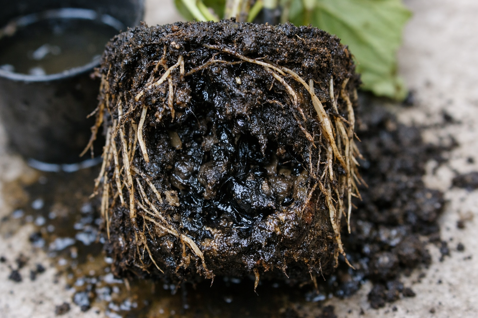 Pouze pokud jsou kořeny stále bílé – rostlinu musíte okamžitě přesadit do zcela suché půdy.