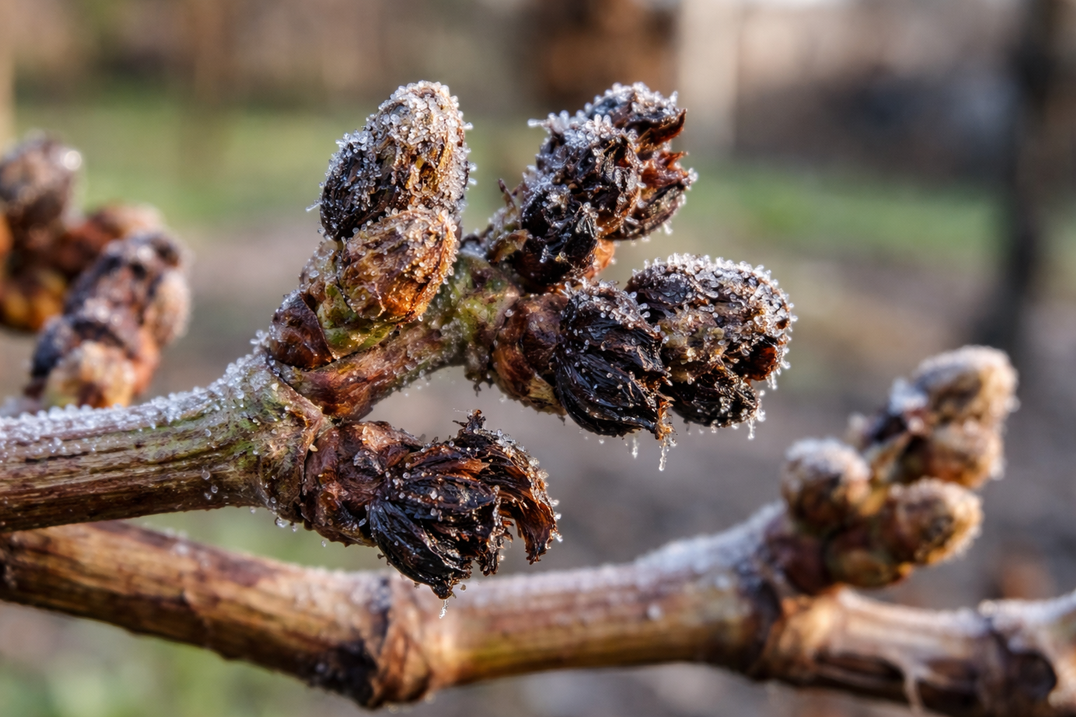 Když teplota stoupne nad +10°CMíza se začne aktivně pohybovat uvnitř révy. Buňky se naplní vlhkostí a jejich obaly ztenčí a zkřehnou. I krátkodobý pokles teploty na -2°C během tohoto období se voda uvnitř pupenu změní v led, který fyzicky roztrhne živou tkáň. V důsledku toho keř vytvoří náhradní pupeny, které jsou však většinou sterilní.