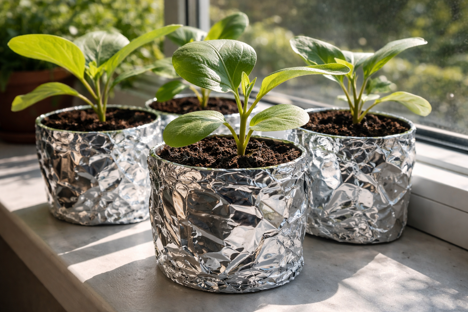 Ujistěte se, že používáte reflexní obrazovky mezi oknem a květináčem.
