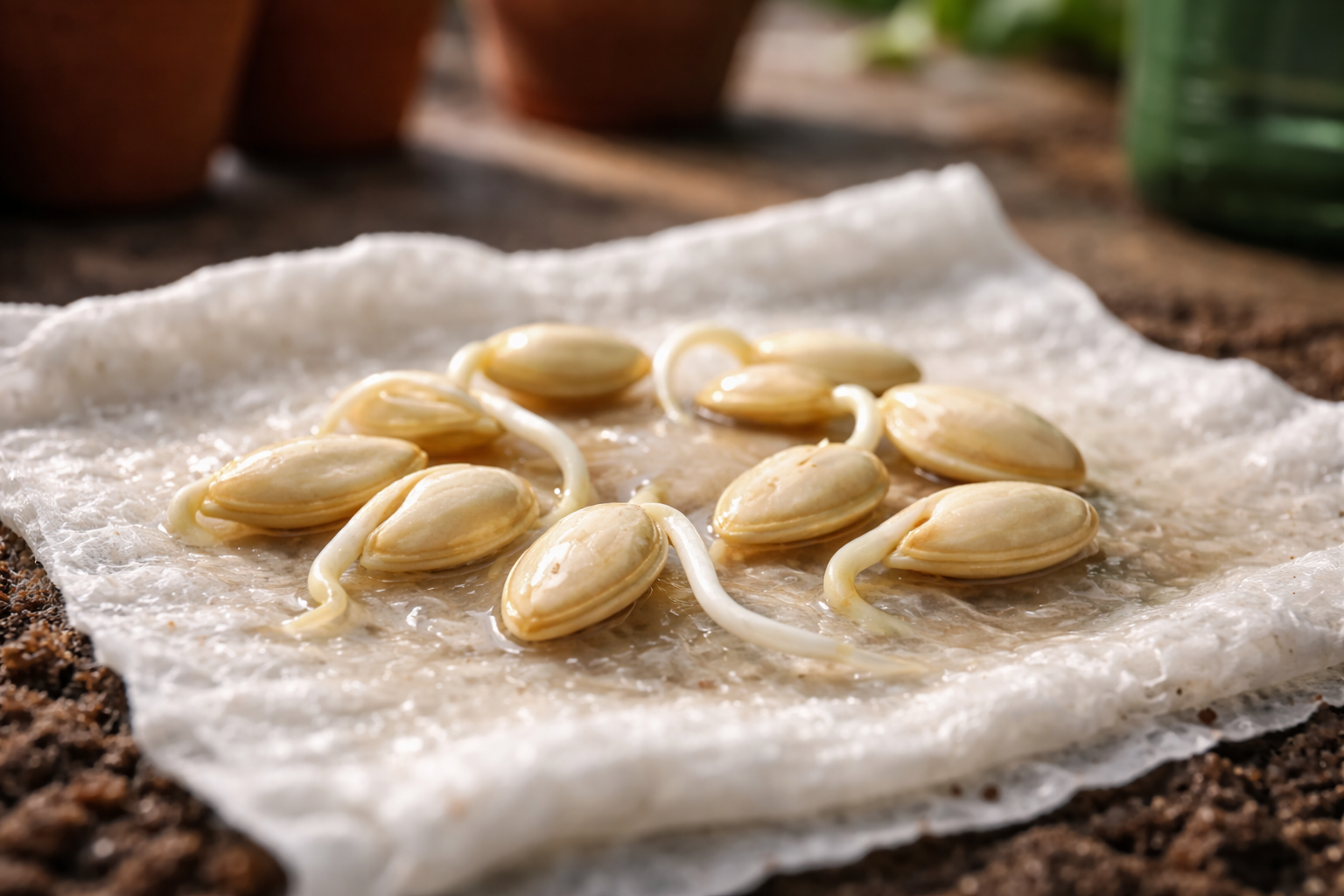Aby dýně vyrostla skutečně obrovská, potřebuje silný start. Nikdy nesázejte do země suchá semena.