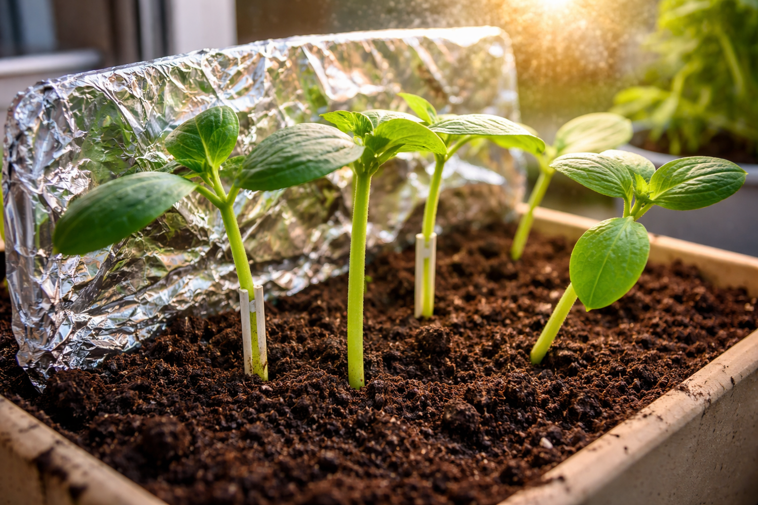 Za sazenice umístěte fóliovou zástěnu nebo zrcadlo, které odráží zbytkové denní světlo.