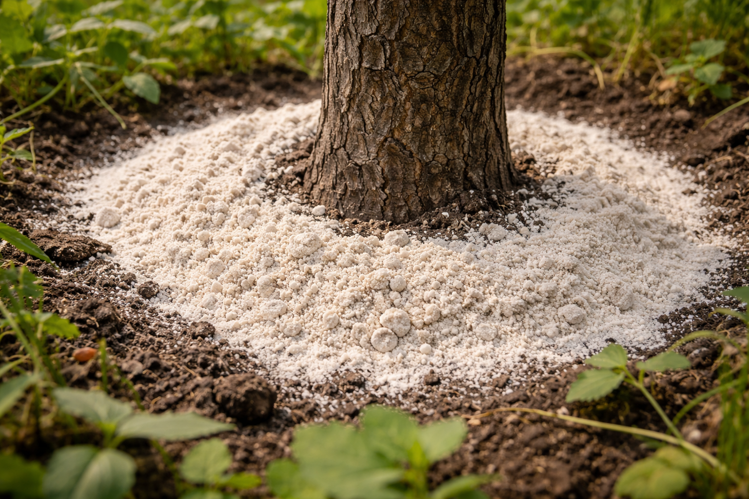 – Prášek rozetřete po celém korunovém výběžku, nejen u kmene. – Nezapomeňte přísadu zapracovat do půdy do hloubky pěti až deseti centimetrů. – Po aplikaci půdu pokropte vodou, aby se procesy aktivovaly.