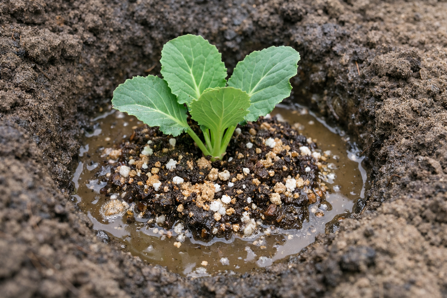 Můj nejlepší tip: do každé jamky přidejte jednu lžičku hořčičného prášku. Ten trvale odpuzuje larvy kapustových mušek a medvědy bez použití agresivních chemických látek.