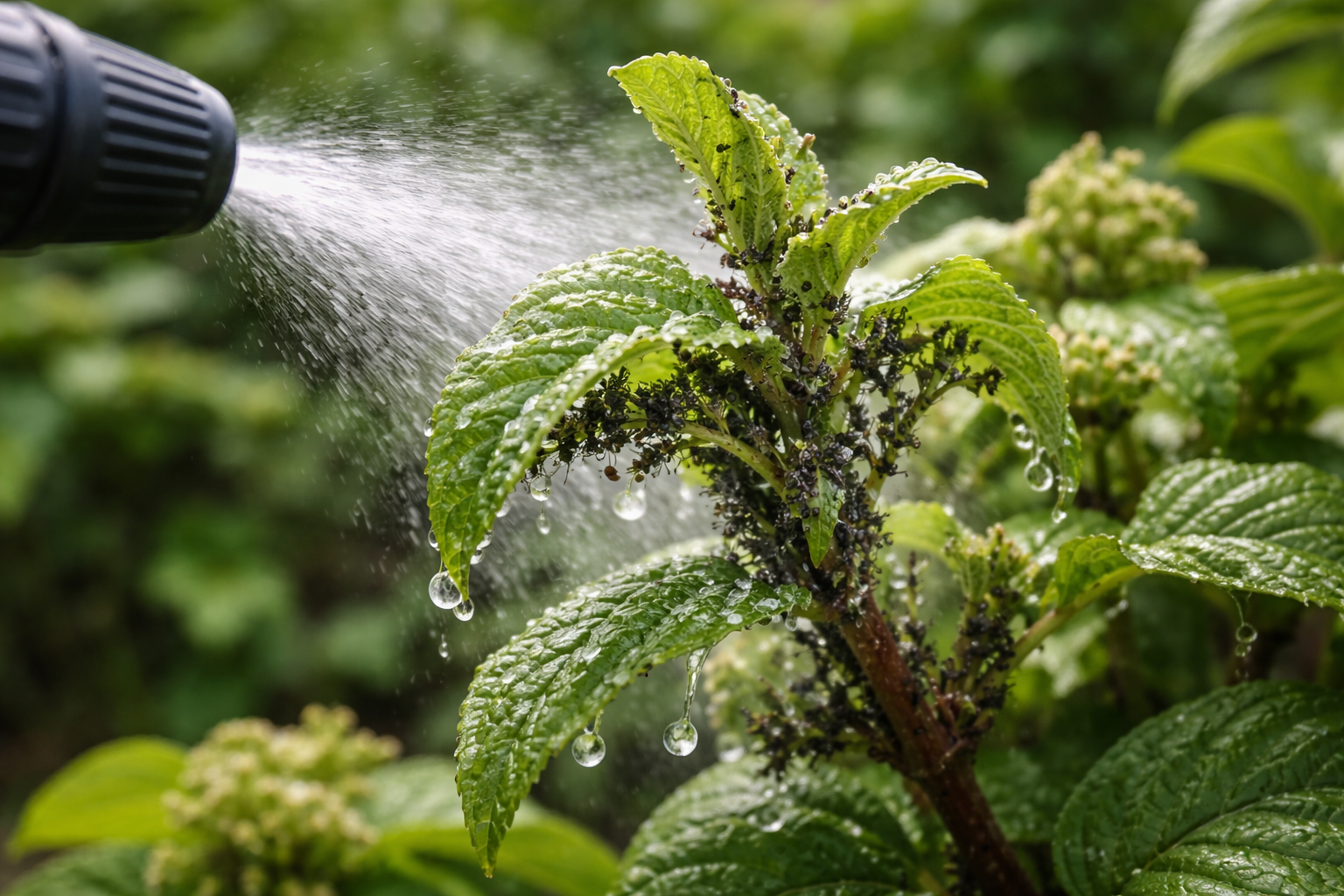 Tajná nuance: Postřikujte keř striktně zdola nahoru. Mšice se vždy skrývají na spodní straně listu a obvyklé zalévání shora podél koruny nepřinese ani 20 % požadovaného výsledku.
