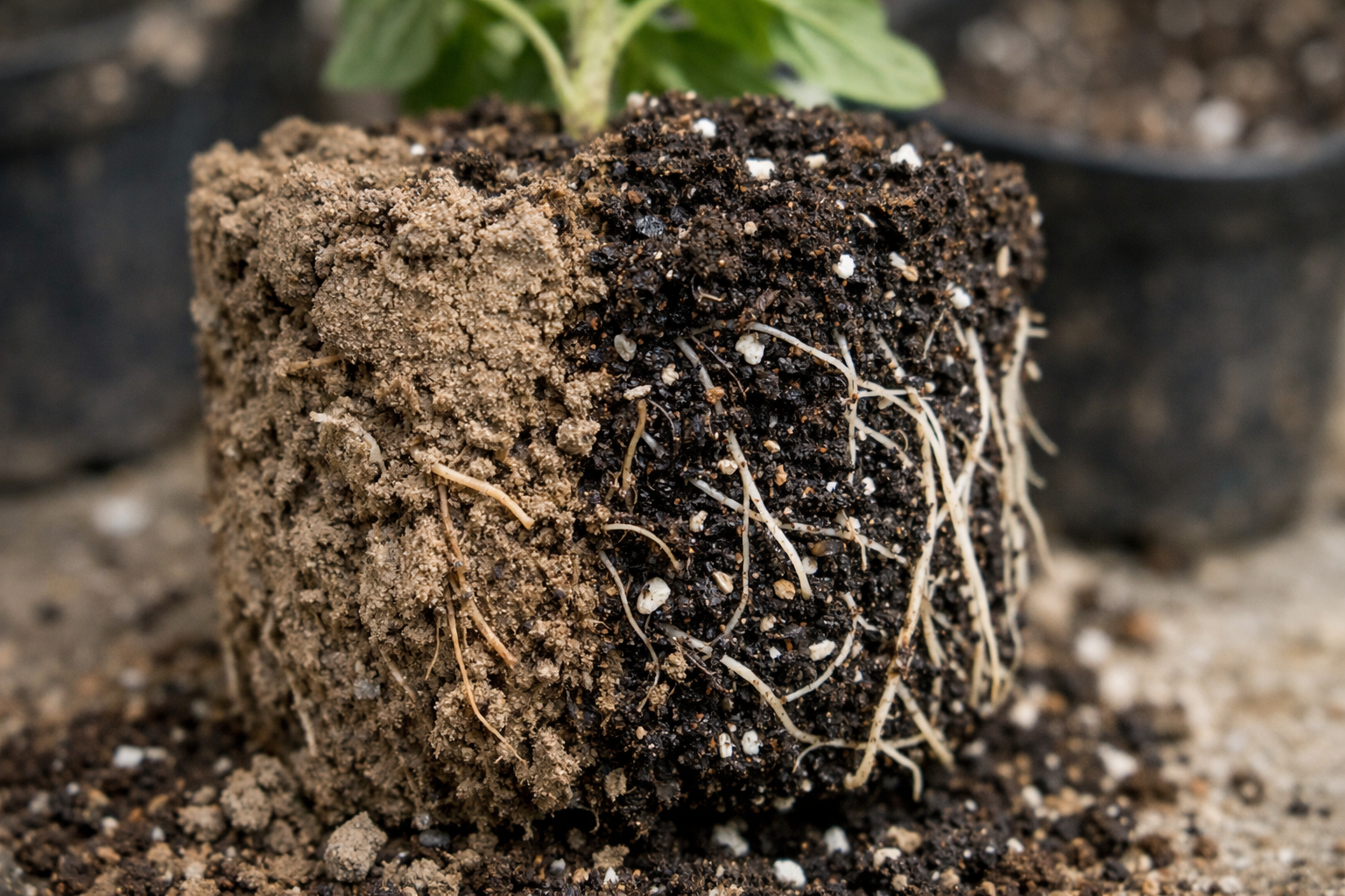 Markus Weber, odborník na agronomii a soukromé zahradnictví: „Za posledních 12 let jsem otestoval více než 40 půdních směsí ve vnitřních podmínkách. Hlavním závěrem je, že úspěch sazenic závisí ze 70 % na fyzikální struktuře půdy, nikoli na množství hnojiva v ní. Těžká půda je odsouzením pro kořenové vlásky, které jednoduše nemohou prorazit husté vrstvy“.