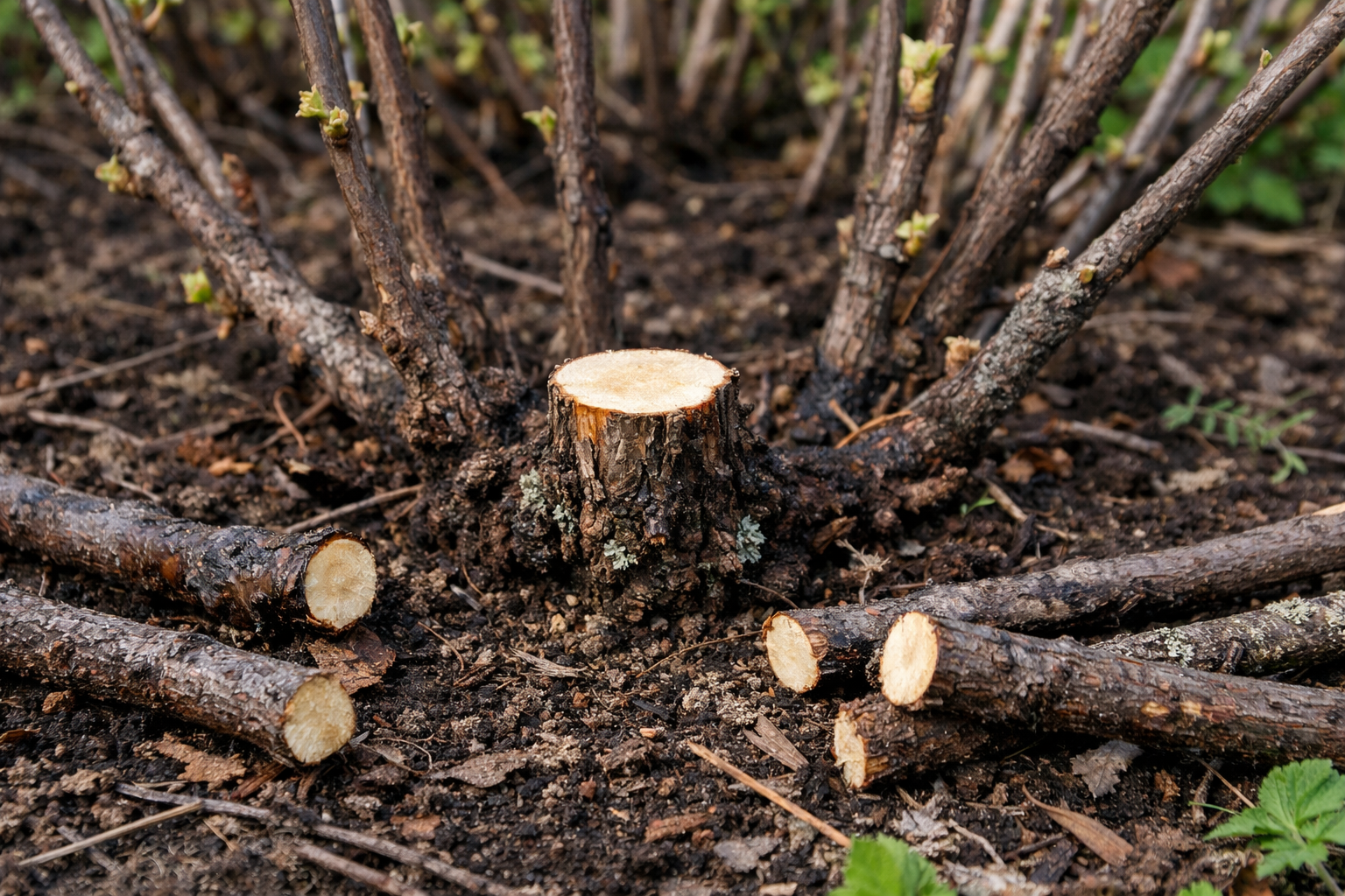Hlavním úkolem zahradníka na jaře je zbavit se balastu. Nejprve jdou pod nůž větve starší než čtyři roky. Prakticky nedávají žádný přírůstek, ale stávají se vynikajícím úkrytem pro skelná houba и ledvinový roztoč.