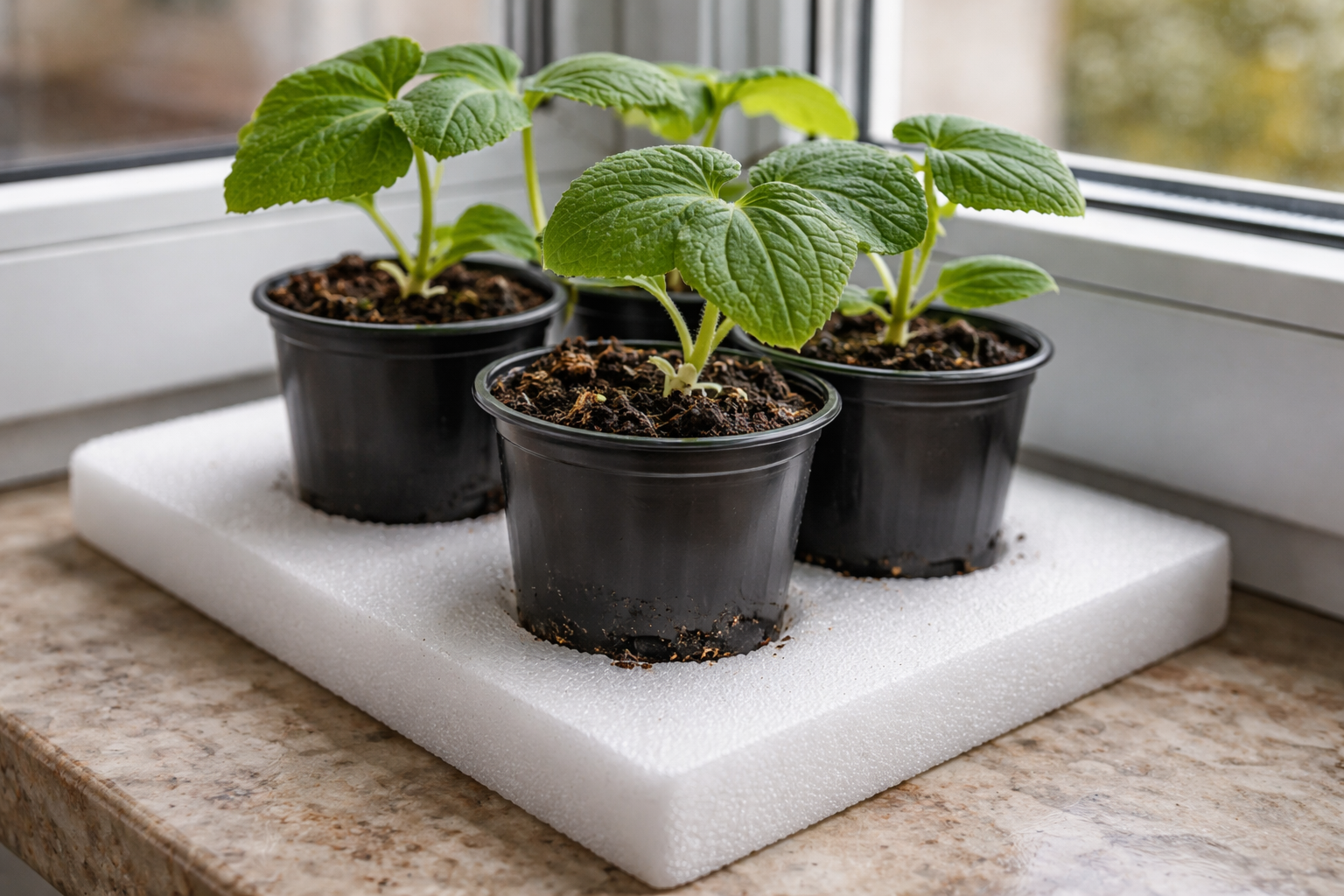 Okurky jsou mezi zeleninou opravdoví slaboši. Hlavním problémem je, že jejich kořenový systém nesnese ani sebemenší přechlazení nebo vyschnutí. Když postavíme květináče na okenní parapet, dochází k efektu „studených nohou“ s horkým vzduchem z radiátorů.