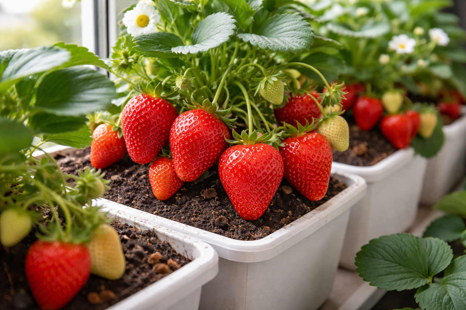 Pás s jahodami na parapetu od první chvíle