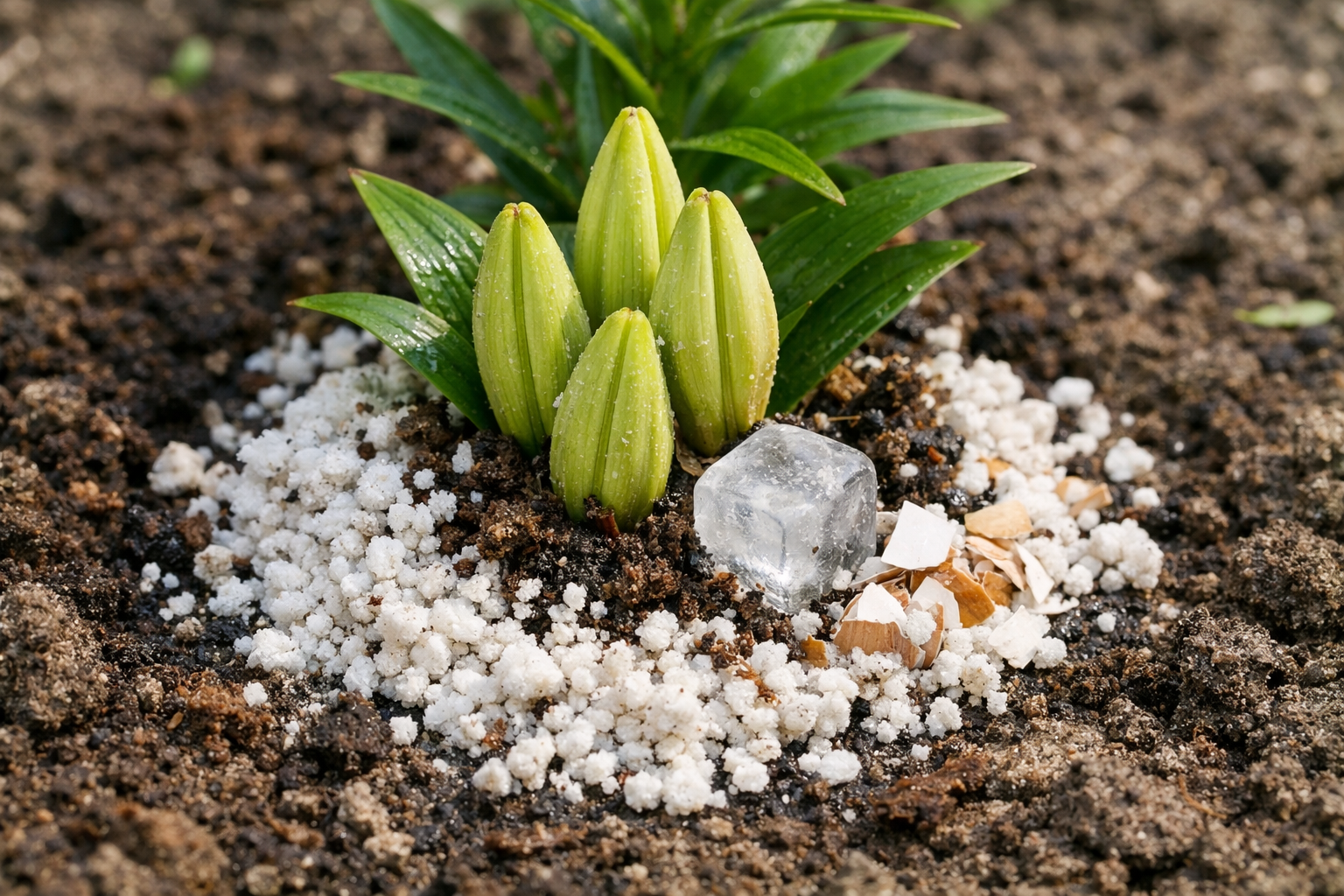 Lilie silně odrazuje agresivní čerstvá organická hmota. Pokud do jamky přidáte nezkvašený hnůj, cibuloviny dostane vážné chemické popáleniny, začne hnít nebo veškerou svou energii věnuje pouze zelenému růstu.