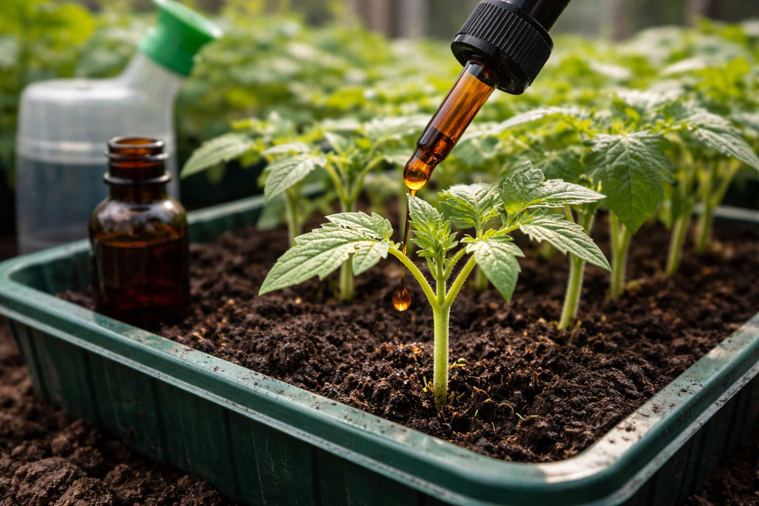 V období aktivního růstu mladé rostliny nezbytně potřebují dostupný jód. Mikroživiny. Známý přípravek z lékárny působí jako silný katalyzátor metabolismu dusíkupomáhá sazenicím rychleji přijímat živiny z půdy. Působí také jako mírný přírodní antiseptikumPřípravek působí antisepticky a potlačuje rozvoj patogenní mikroflóry v půdě.
