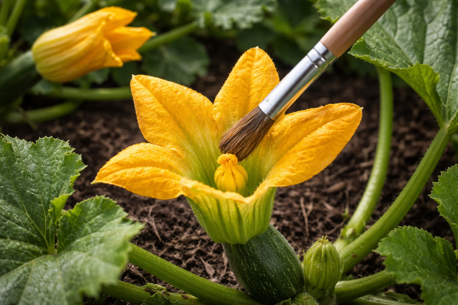 Mým osobním tajemstvím záchrany úrody je umělé opylování: pokud je zataženo, vezmu obyčejný měkký štětec a sám opatrně přenáším pyl ze samčích květů na květy samičí.