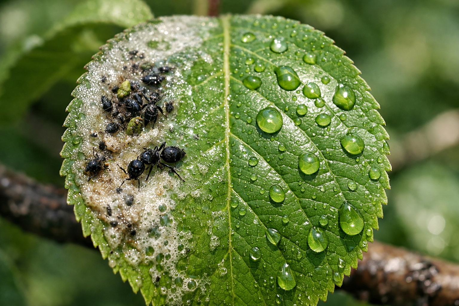 Vytváří na povrchu listů nesmazatelný lepkavý film.
