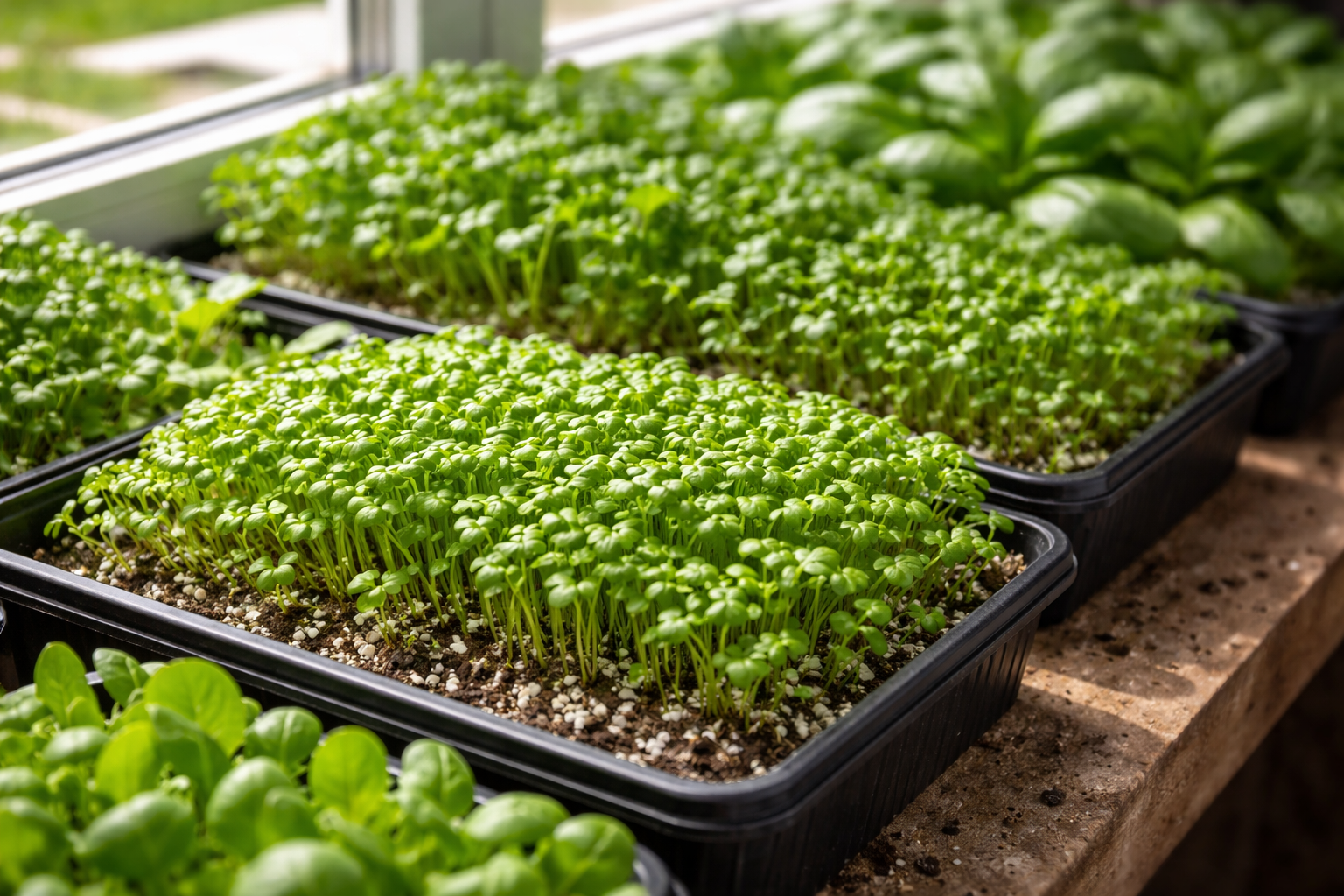 Tajemství rychlého startu spočívá ve správném výběru osiva. Nepoužívejte hned rozmarné rostliny, je lepší dát přednost plodinám, které začátečníkům odpouštějí chyby. Výborně se ukazují Řeřicha, hořčice listová и rukola. Mají vysokou klíčivost a již v raných stadiích vytvářejí hustou čepičku.