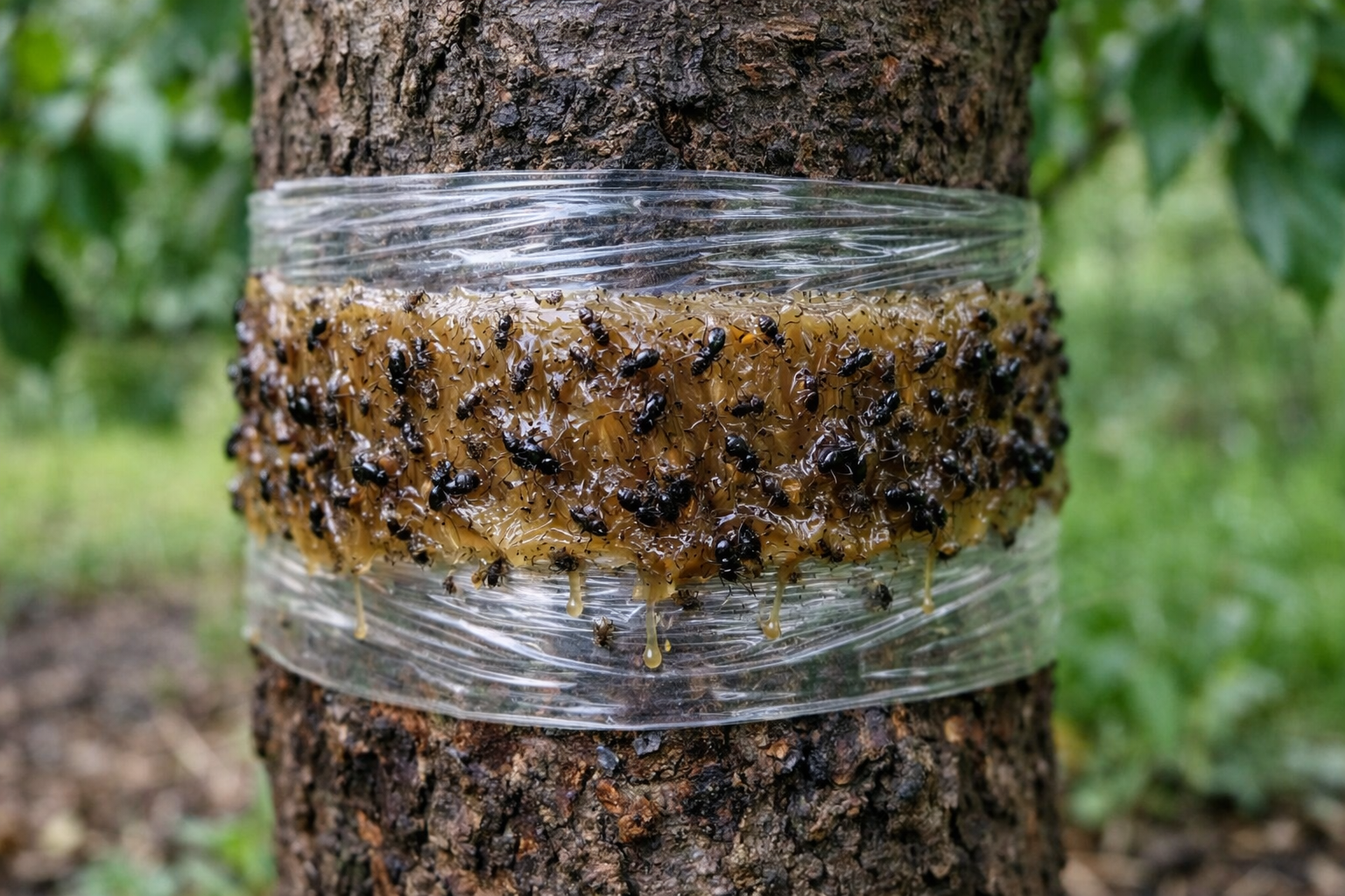 Silný proud vody hmyz pouze dočasně spláchne, ale bez lepivého aktivního roztoku se rychle vrátí.