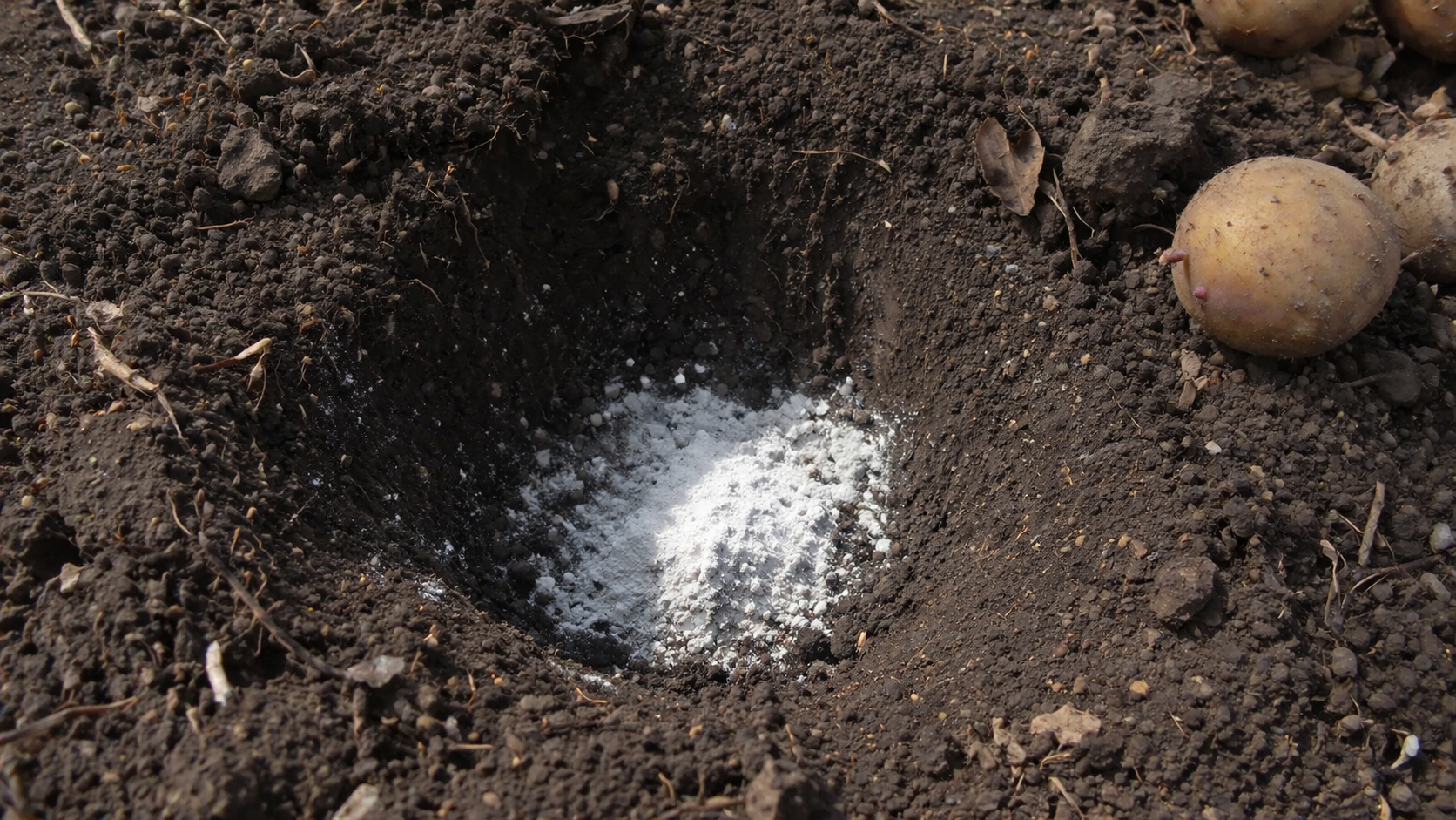 Před zasazením hlízy přípravek lehce posypte půdu.