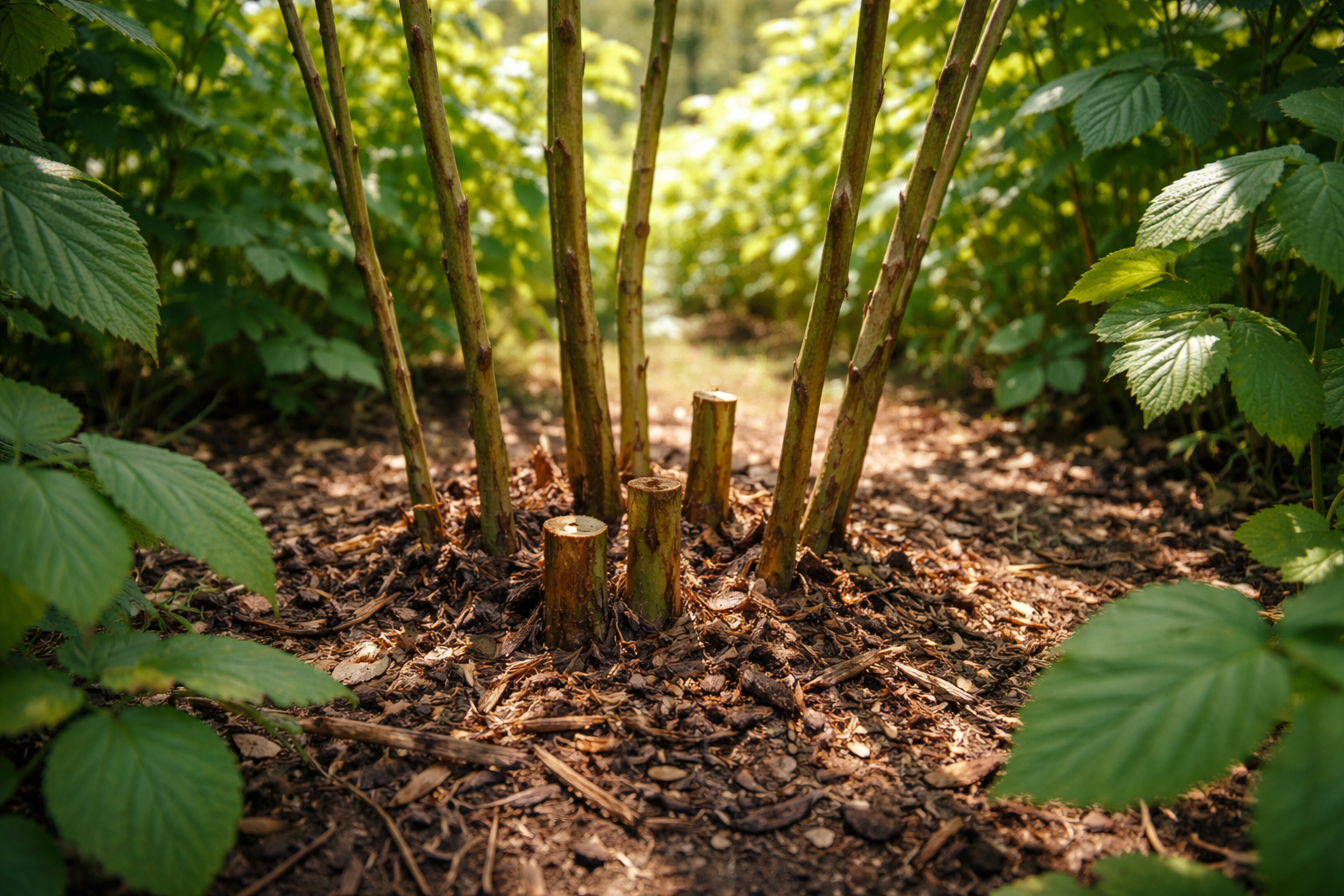 Správné prořezání husté koruny stromů nad maliníkem výrazně zvýší výnos díky pronikajícím světelným proudům.