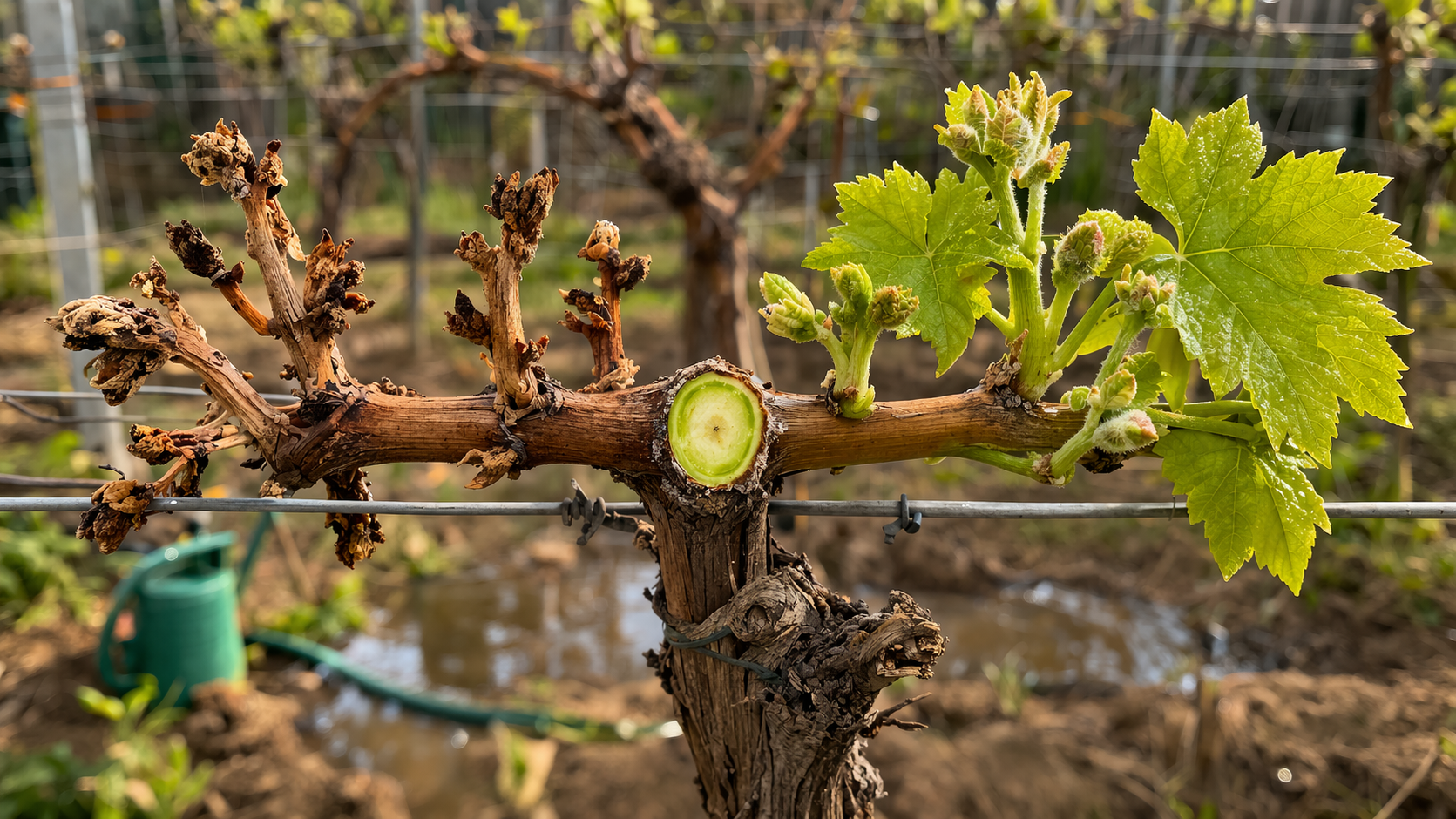 Když to udeří jarní návrat mrazůa první, kdo umírá centrální ledvina – která produkuje největší a nejzdravější svazky. Mnoho pěstitelů vinné révy propadá panice a začíná řezat révu od kořene, aniž by věděli, že příroda zabudovala do rostliny silný bezpečnostní mechanismus. Hrozny se mohou zotavit, pokud jsou správně stimulovány. náhradní pupeny и rohová kukátka.