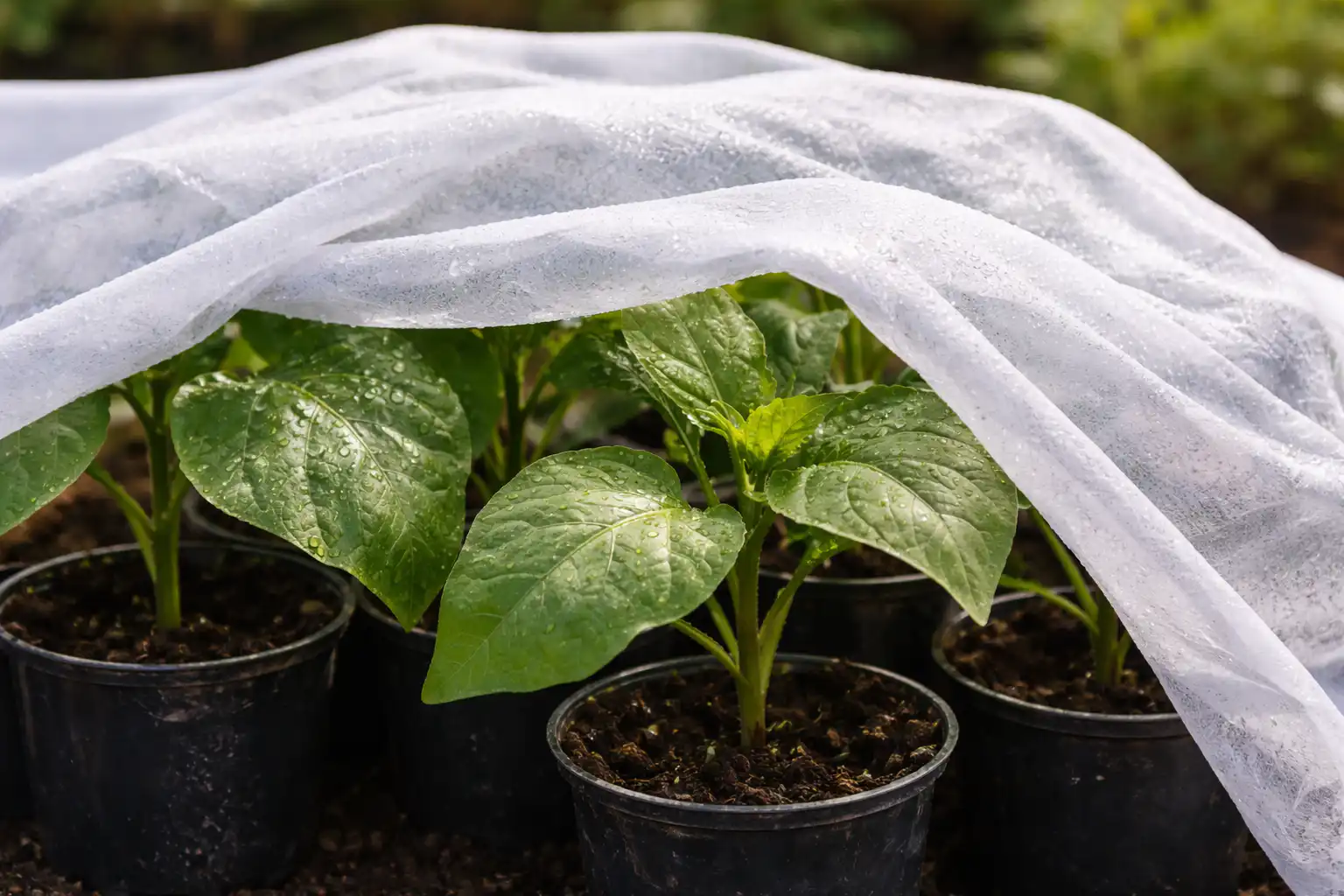 Nezapomeňte plastové kelímky přikrýt tenkou světlou látkou. Spunbond k vytvoření záchranného stínového efektu